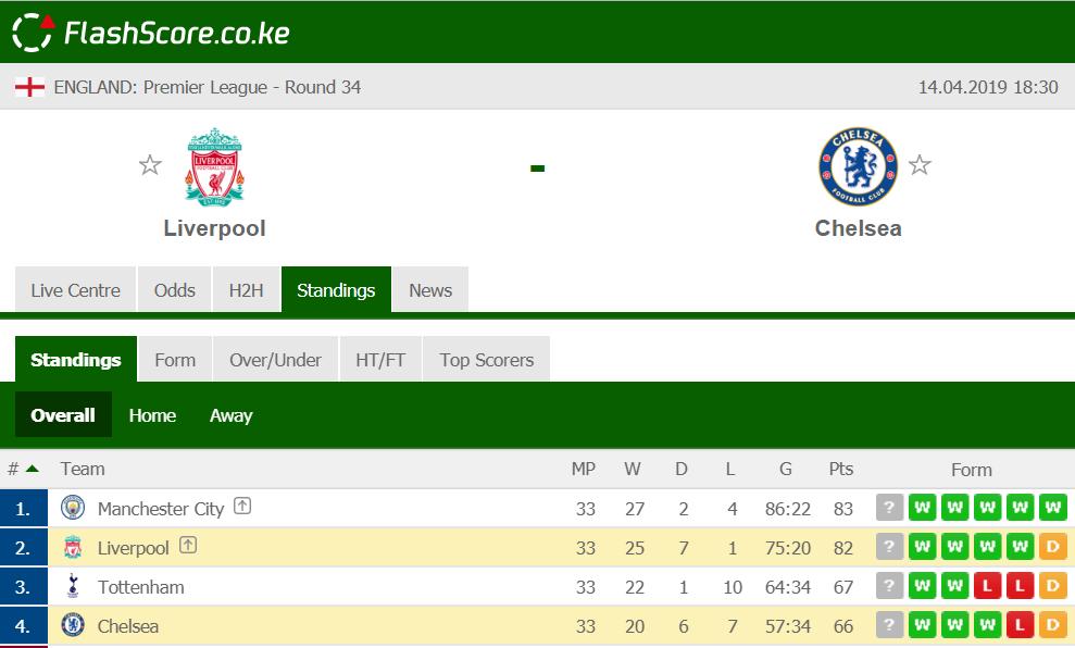 Liverpool Vs Chelsea Flashscore | Flashscore League Standings